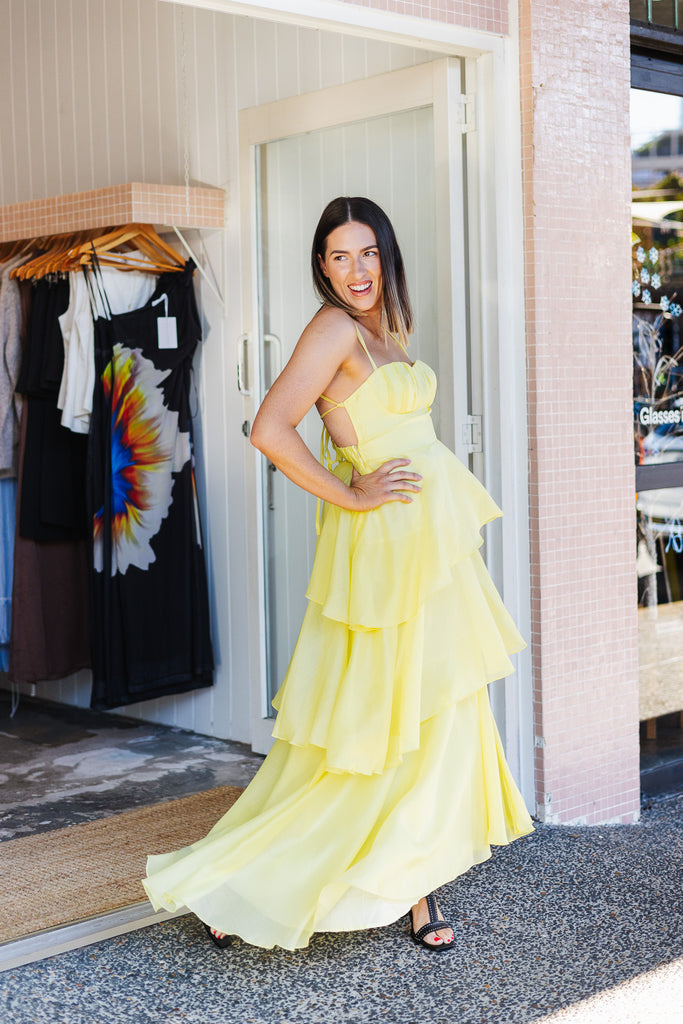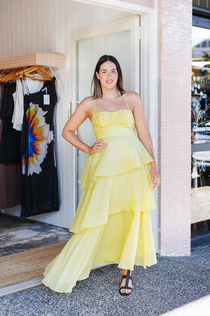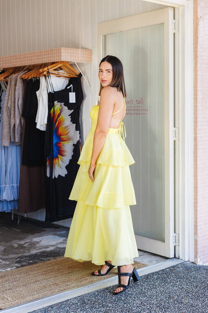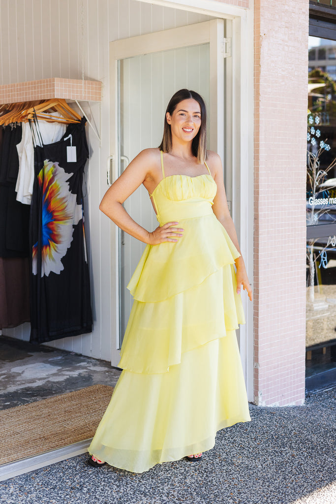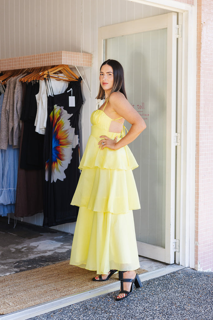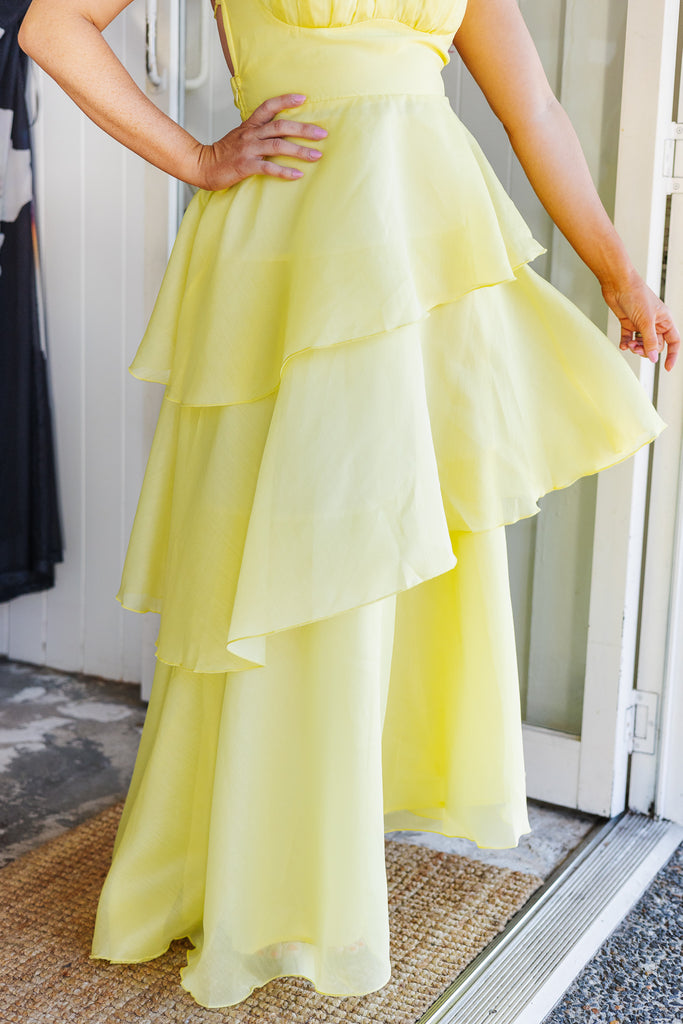 - Stunning floaty tiered butter maxi dress