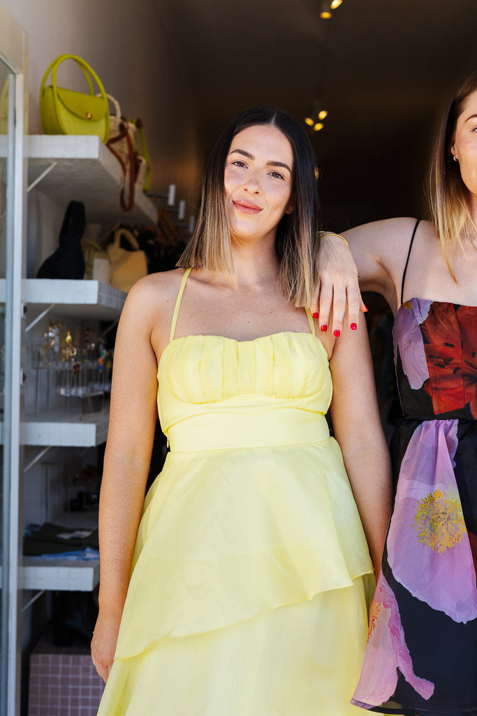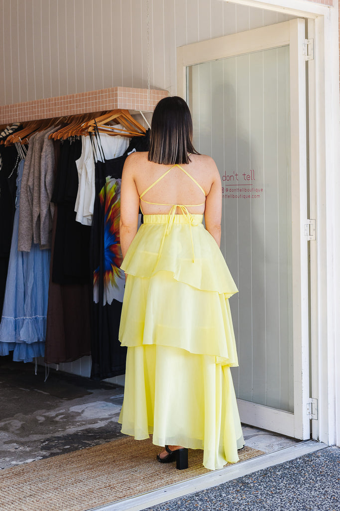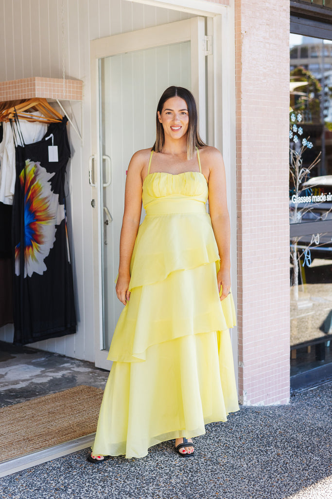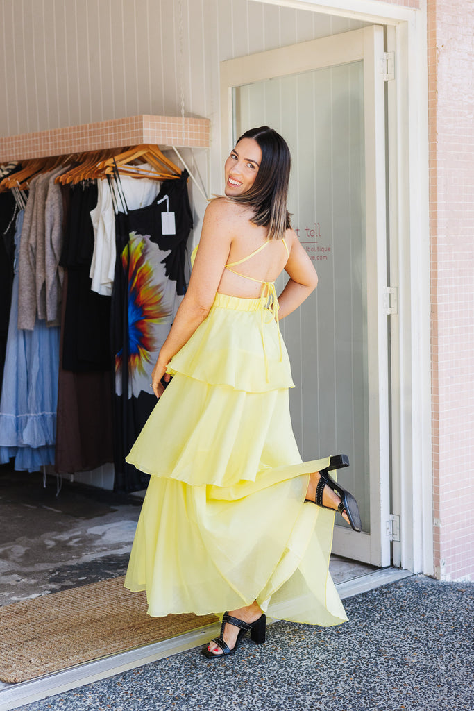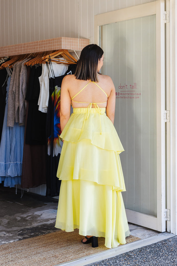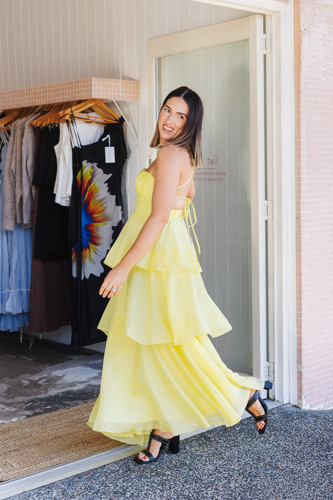 - Stunning floaty tiered butter maxi dress