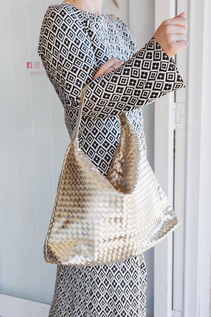 - Gorgeous all gold or black large woven slouchy vegan leather hang bags