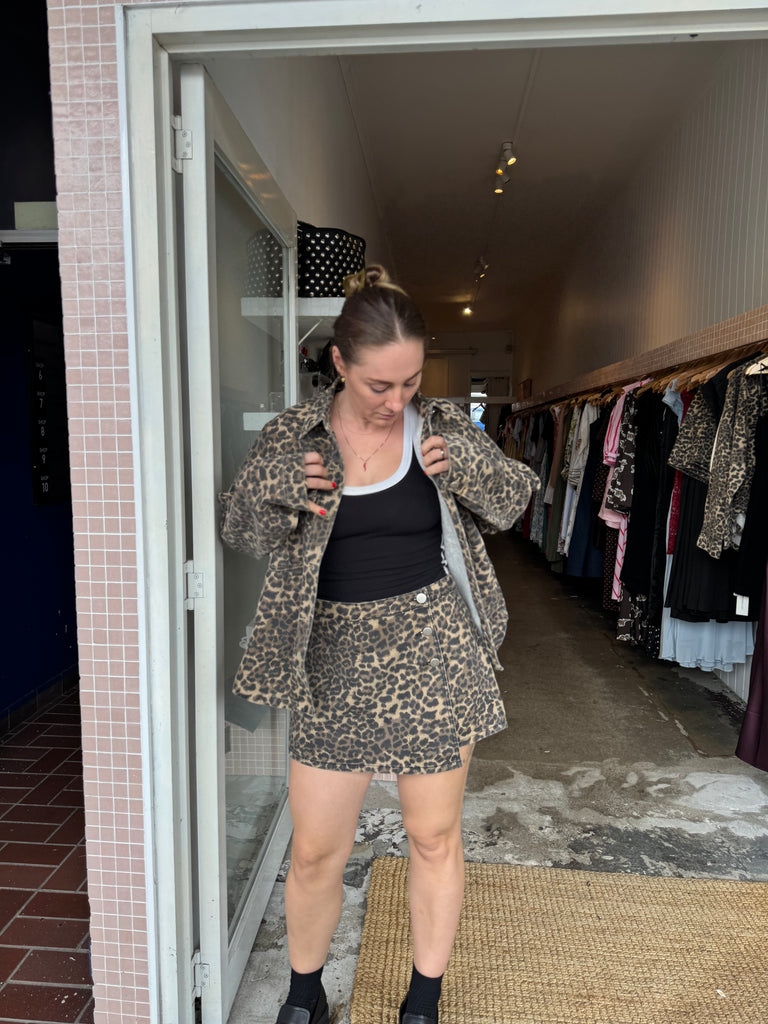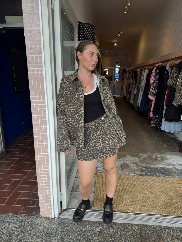 - Leopard print denim jacket