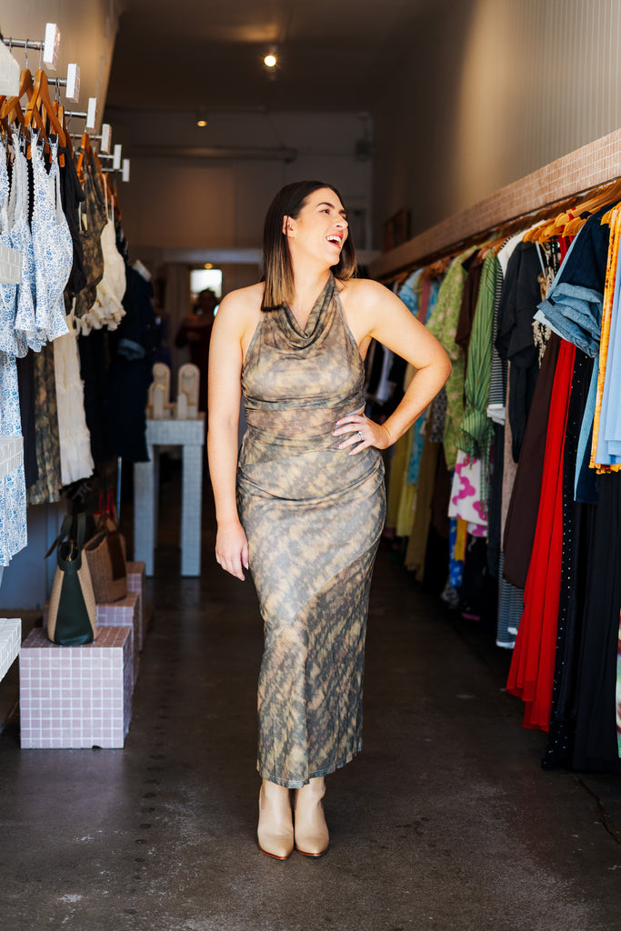 - Incredible printed asymmetric mesh halter and midi skirt set
